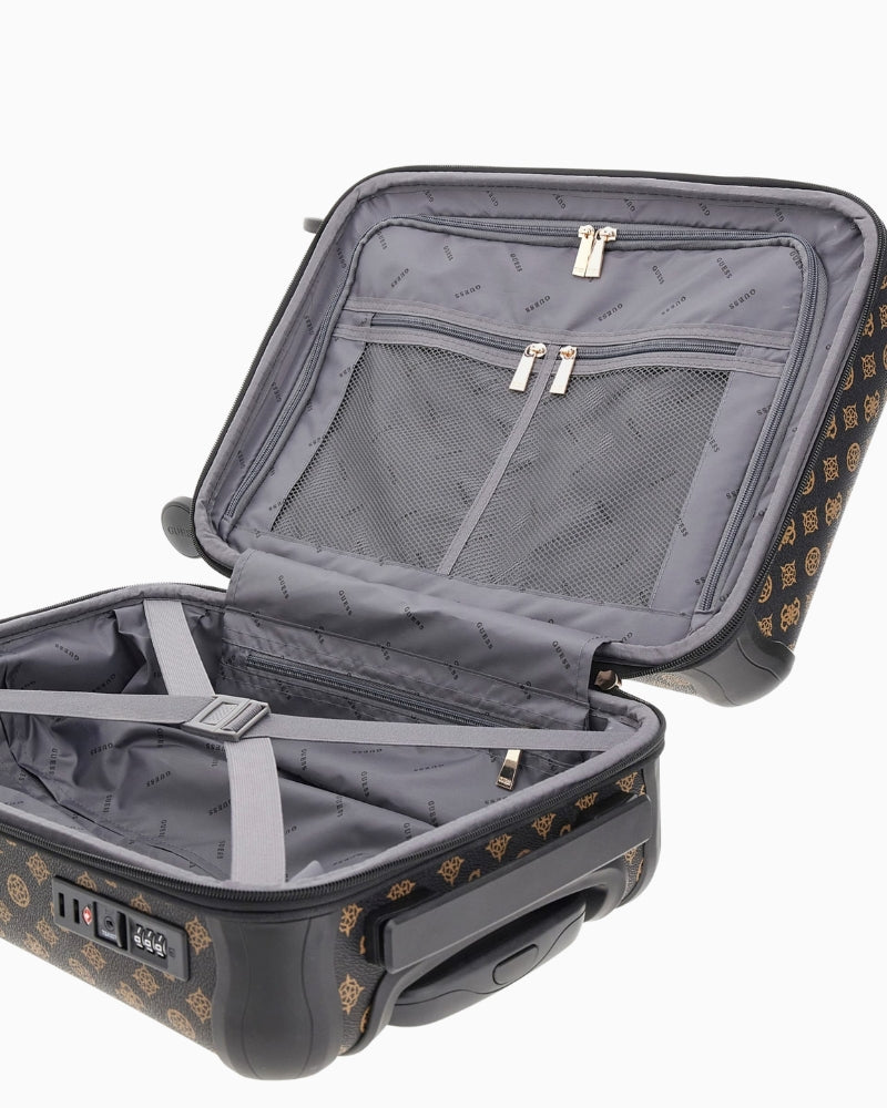Whether you're off for a weekend away or heading on a short work trip, the Wilder 4G logo trolley from Guess is a stylish choice that doesn’t skimp on function. With its signature 4G and peony logo print, smooth wheels and built-in TSA lock, it’s as secure and easy to handle as it is good-looking.