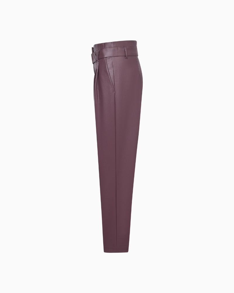 The Nicole trousers from Raffaello Rossi are an elegant twist on everyday trousers—made in soft, stretchy vegan Nappa leather with a beautiful finish and subtle structure. With their high waist, straight leg, and included belt, they strike just the right balance between sharp and comfortable.