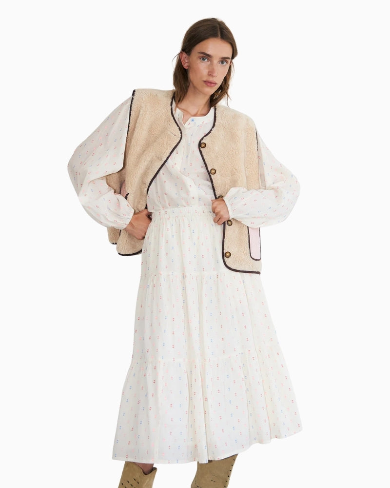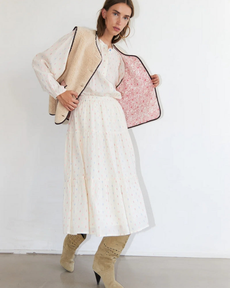 The Jace Love Teddy Vest from Lollys Laundry is a cosy, feel-good layer that adds warmth and character to everyday outfits. Made from soft teddy fabric in a warm off-white tone, it feels snug and comfortable while staying easy to wear. Contrast trims and patch pockets give it a playful look, while the embroidered LOVE motif on the back adds a fun, expressive finish. Perfect for layering over shirts, knits or dresses.