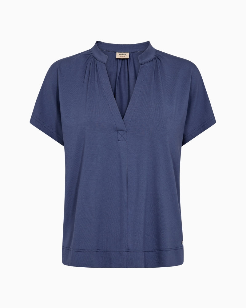 The Mos Mosh Shira Tee is a chic and versatile essential designed to elevate everyday dressing. Crafted from a soft viscose blend with added stretch, this tee drapes beautifully on the body while offering exceptional comfort. The loose silhouette is complemented by a flattering V-neckline and delicate pleat detailing, adding a refined touch to a simple staple.