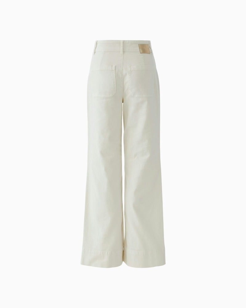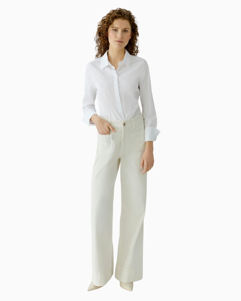 These Oui high-waist jeans are a fresh, modern take on everyday denim. Made from elastic cotton denim, they feel comfortable with just enough stretch for easy movement. The high waist sits neatly, while the wide, slightly flared leg creates a relaxed shape that still feels polished. Finished with a classic denim waistband and practical patch pockets, they’re an easy option for casual days when you still want a clean, put-together look.