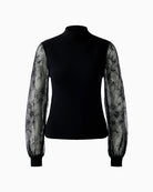 • Sheer floral lace balloon sleeves with rib-knit cuffs
