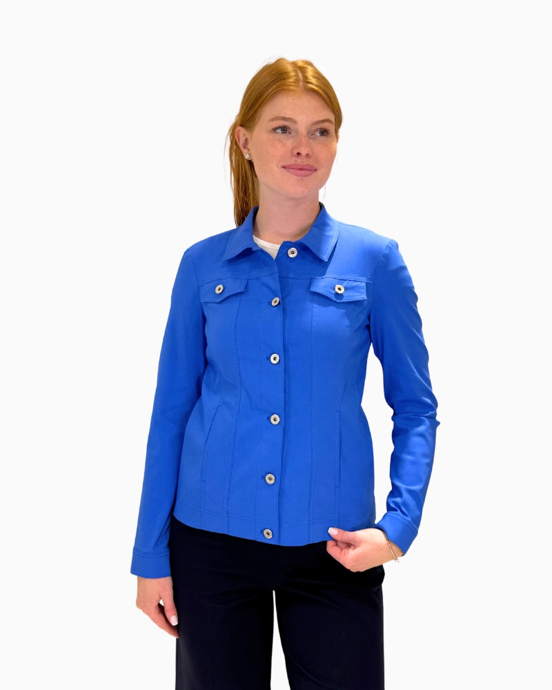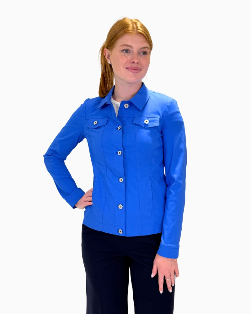 The Robell Happy Jacket is one of those easy pieces you'll wear again and again. Made in a soft cotton stretch fabric, it’s cut to sit neatly on the body without feeling tight. With its smart button front, full sleeves, and classic collar, it’s a handy layer for cooler days – lovely with jeans, dresses, or skirts.
