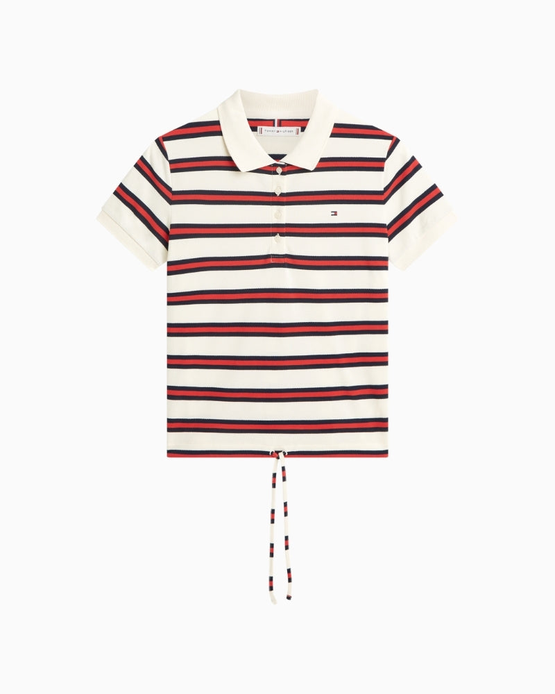 The Tommy Hilfiger Multistripe Modern Polo delivers a timeless sporty look with a contemporary update. Crafted from a soft cotton blend with added stretch, it offers all-day comfort while maintaining a flattering, feminine shape. The multicolour stripe pattern adds classic Tommy Hilfiger character, finished with a traditional polo collar and subtle flag embroidery at the chest. Perfect for polished casual dressing throughout the season.