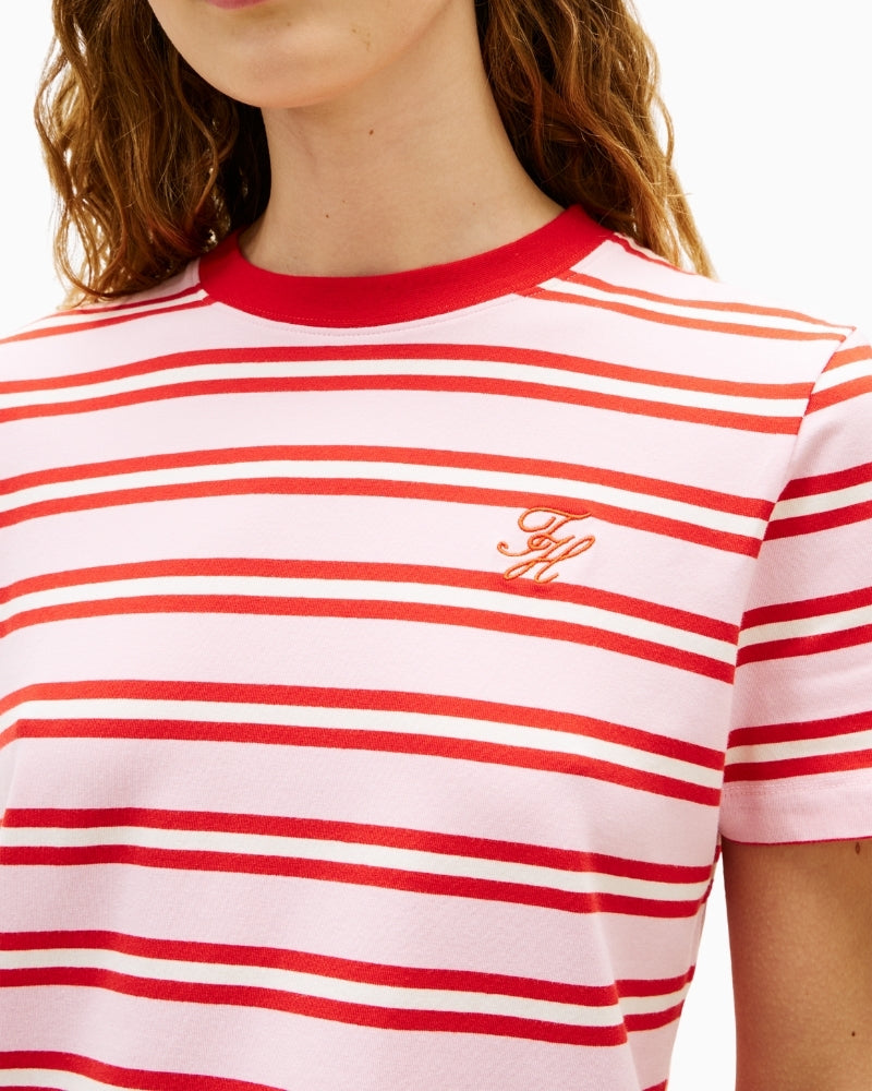 This Tommy Hilfiger striped T-shirt is a comfortable, easy piece for everyday dressing. Made from a soft cotton blend with added stretch, it feels gentle on the skin and moves easily with you. The regular fit keeps it relaxed without looking oversized, while the crew neckline gives a clean, classic finish. Finished with subtle script logo embroidery, it’s a reliable go-to for casual days.
