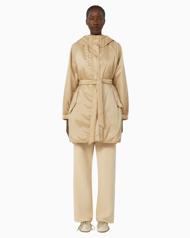 The Veranda parka from Weekend Max Mara is a versatile outer layer designed for practical everyday wear. Reversible for two looks in one, it features a water-repellent canvas outer and a softly quilted interior padded with Luxepad Ultra Fine Insulation. The straight fit is finished with a matching belt and side slits for comfort, while the hood and secure zip-and-stud fastening make it an easy, reliable choice for changeable weather.