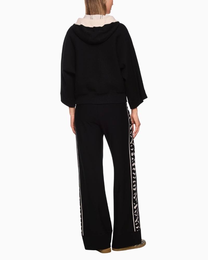 Hood with bold contrast stripe and animal print trim
