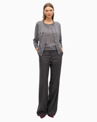 This soft grey cardigan from Lola Casademunt is a gorgeous blend of comfort and elegance. Designed as a two-piece effect, it features a built-in underlayer and a sparkling jewel bow detail at the neckline. The relaxed fit, button front, and fine merino wool blend make it as wearable as it is polished.