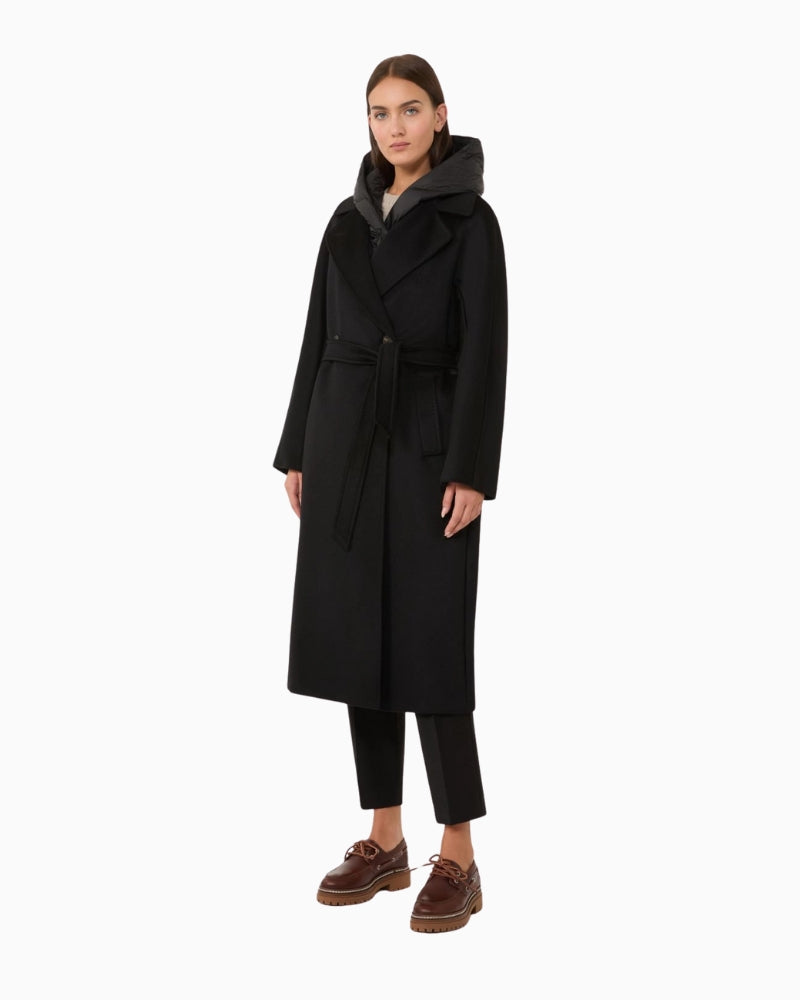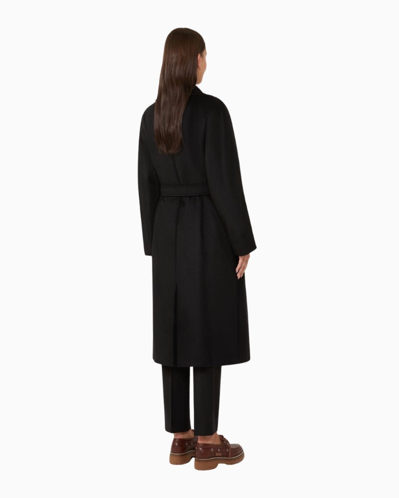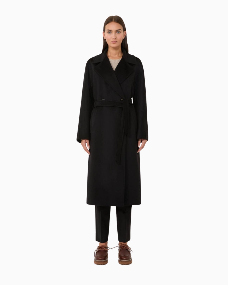 Classic and beautifully made, the Resina coat from Weekend Max Mara is a timeless black wool wrap you’ll have for years. Tailored from pure virgin wool, it has a straight cut with wide lapels and a matching belt to cinch the waist. Fully lined and finished with kimono-style sleeves, it’s chic but practical—ideal for smart days out or dressier evenings.