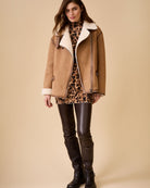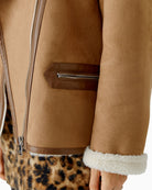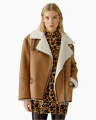 Bring a touch of biker style into winter with this camel aviator jacket from Oui. Designed in a lambskin look with cosy faux fur lining, it’s oversized, warm, and full of thoughtful details — perfect for layering on crisp days.