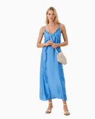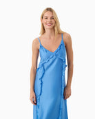 This sleeveless slip dress is one of those pieces that’s as easy to wear as it is elegant. Made in a light, silky-feel fabric with a soft sheen, it drapes beautifully and gives you a fluid, oversized silhouette. The ruffled neckline and side detailing add a soft, feminine touch – a great one for summer events or holidays.