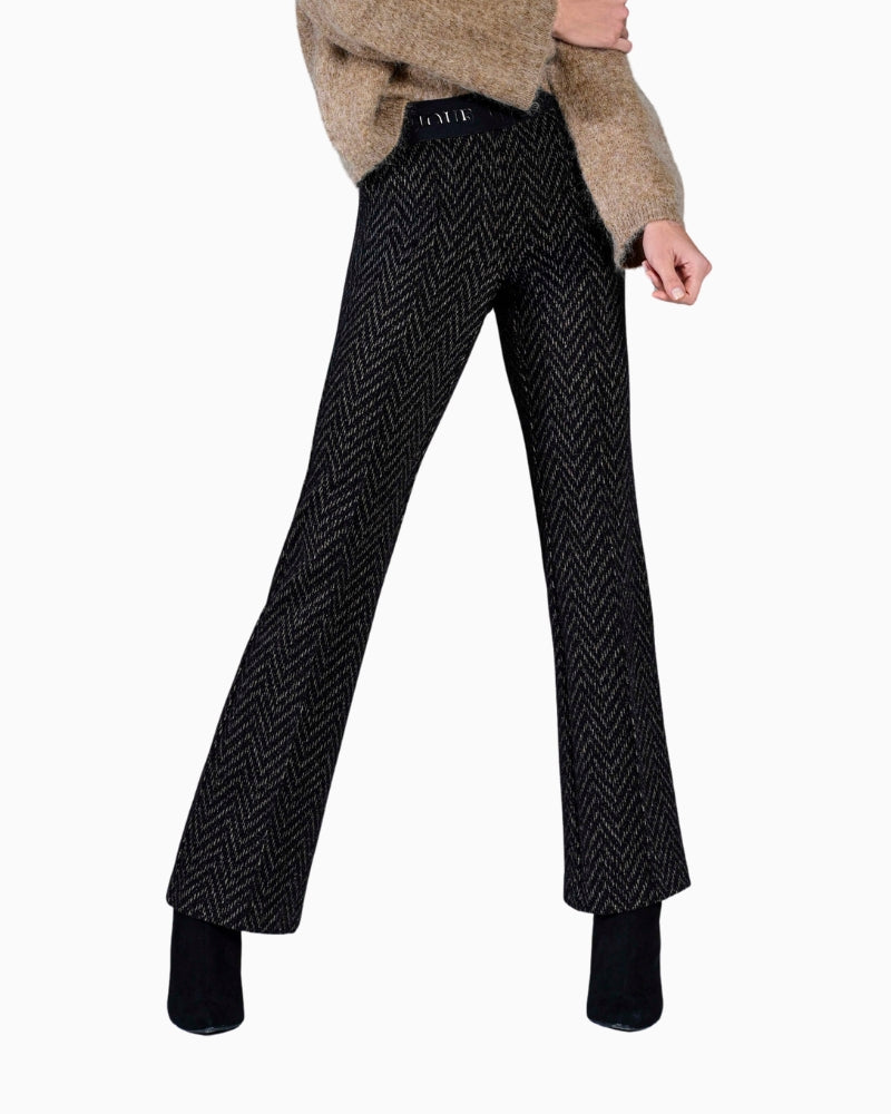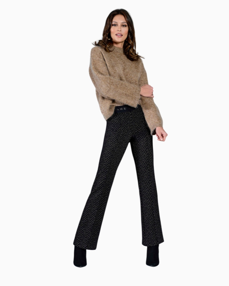 The Robell Joella trouser is a stylish choice with its black and beige patterned design. Cut in a flattering flared leg and made in Robell’s famously comfortable stretch fabric, it’s a versatile pair you’ll reach for time and again.