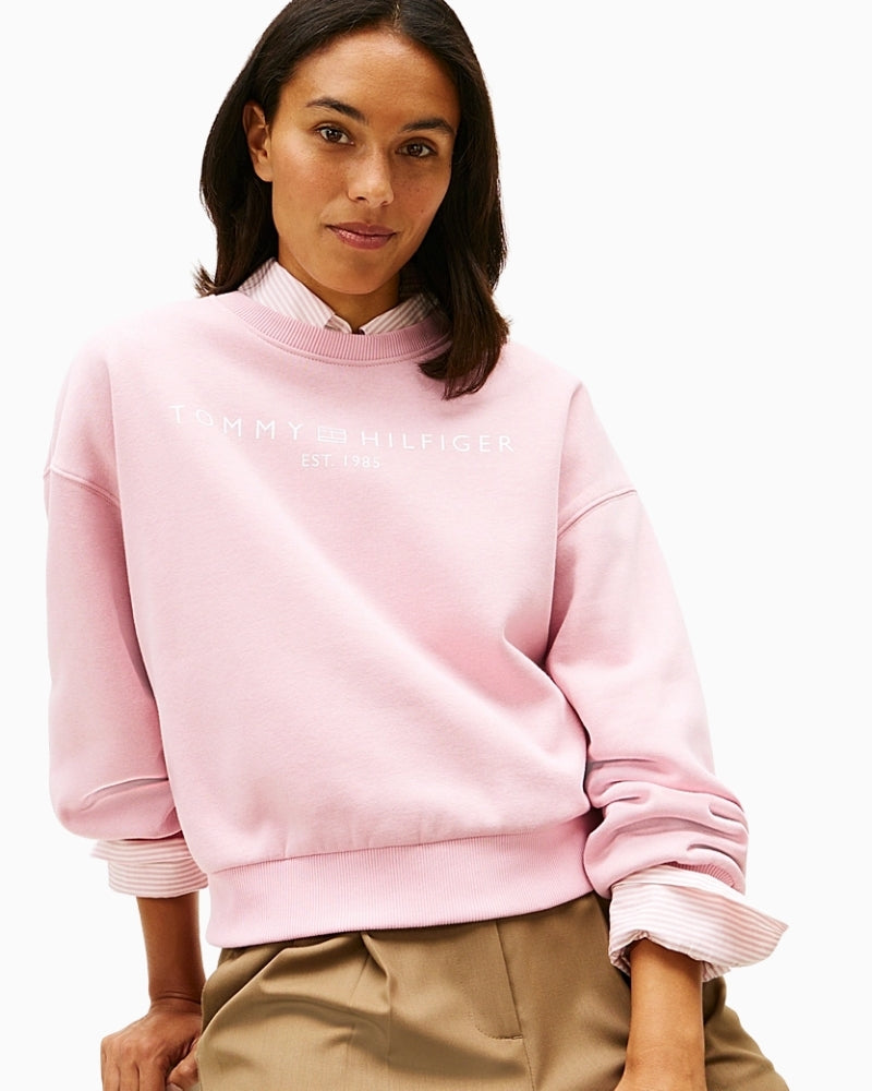 This relaxed-fit sweatshirt from Tommy Hilfiger is just the thing for cosy, off-duty days. Crafted from cotton-blend flex fleece, it features a classic crew neckline, dropped shoulders, and the signature logo on the chest. Simple, comfy, and easy to wear.