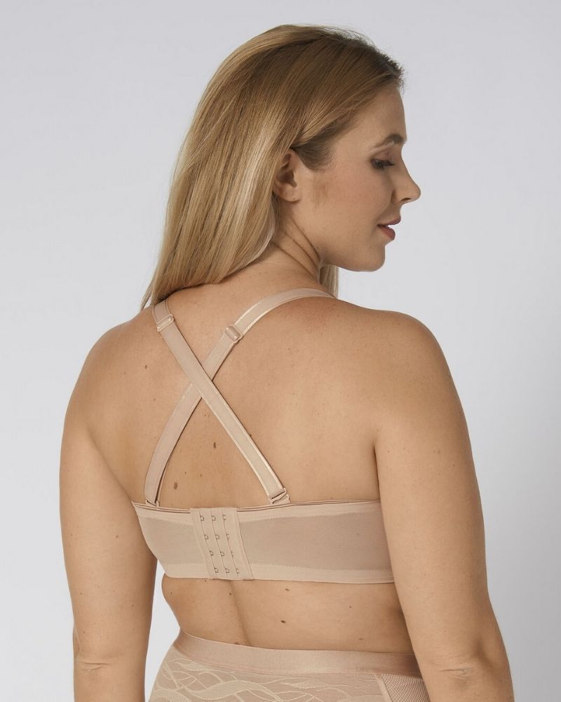 • Moulded strapless T-shirt bra crafted from a feminine elastic lace