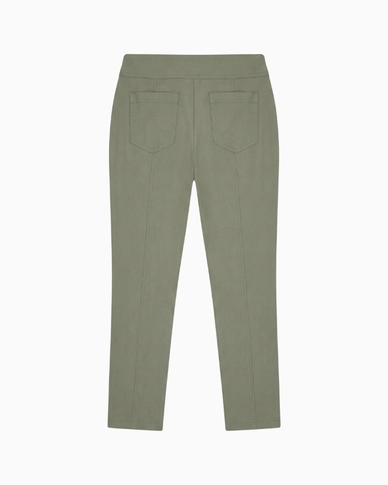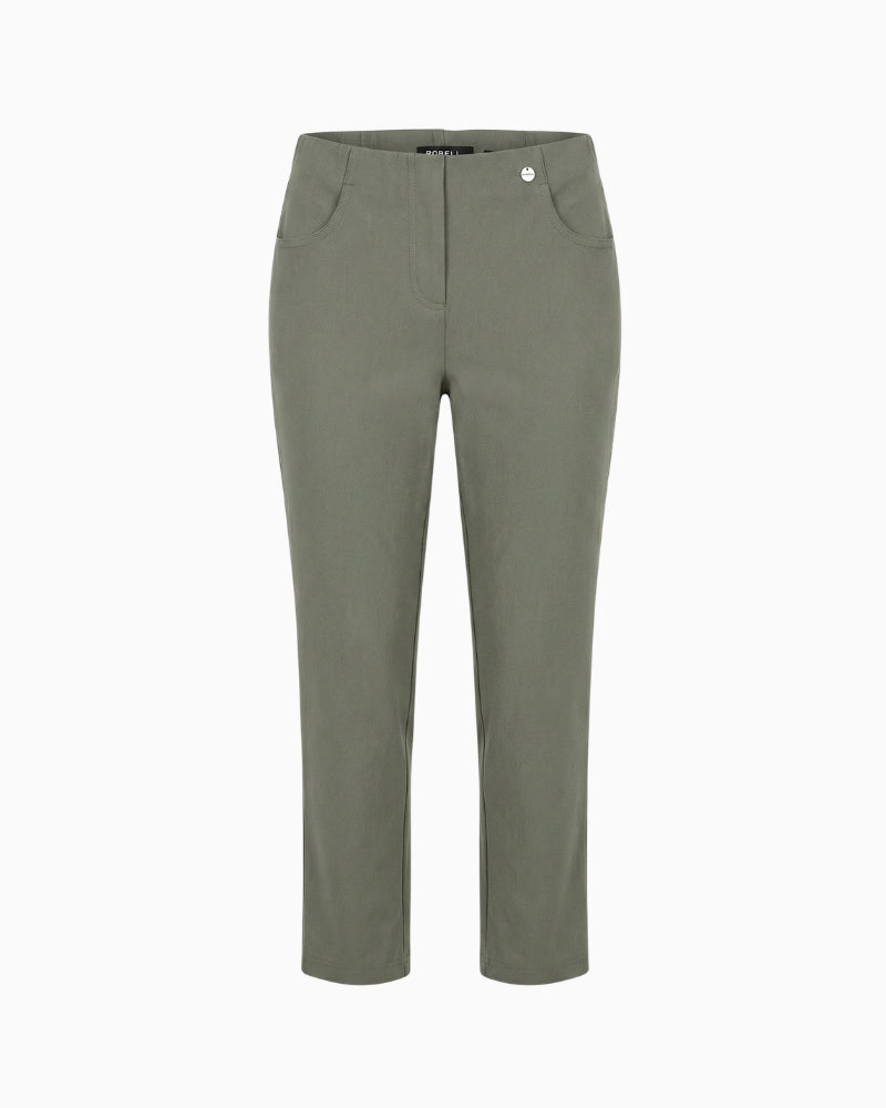 The Bella 7/8 trousers from Robell are a reliable straight-leg style in an easy-to-wear khaki shade. Made from soft bengaline stretch fabric, they offer flexibility and hold their shape beautifully throughout the day. The wide elastic waistband gives smooth pull-on comfort, while the ankle-length cut keeps the look neat and modern. With practical pockets and a clean finish, they’re a great everyday option.
