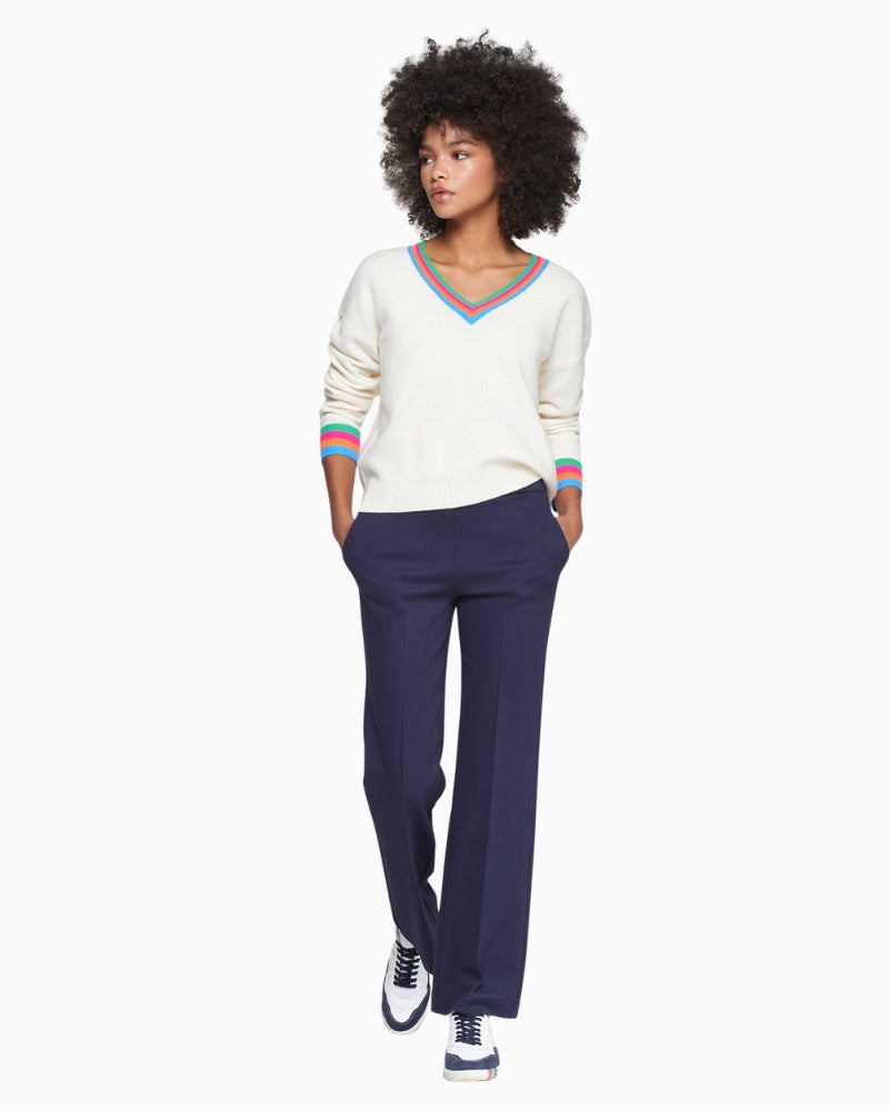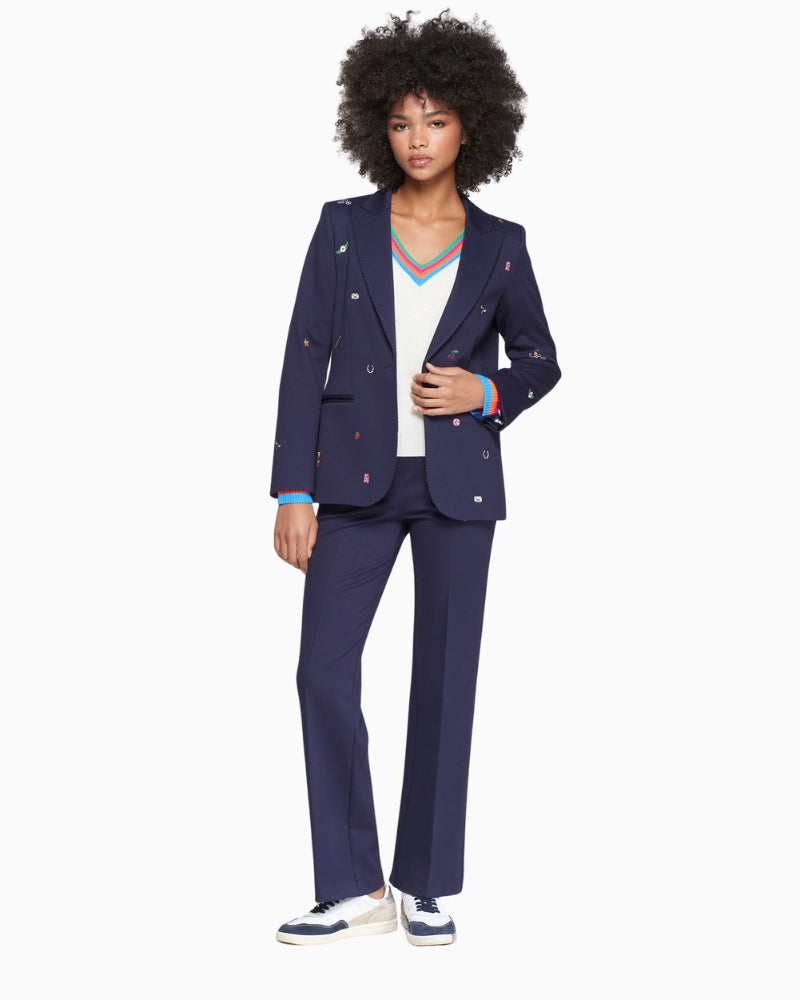 A great everyday trouser with a smart edge, the Vilagallo Martina is a straight-cut navy style made in a comfortable, structured fabric blend. They sit neatly at the waist and have a clean, fuss-free front—making them easy to style for work or more polished days.